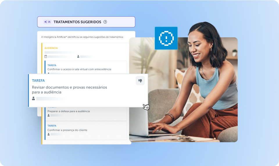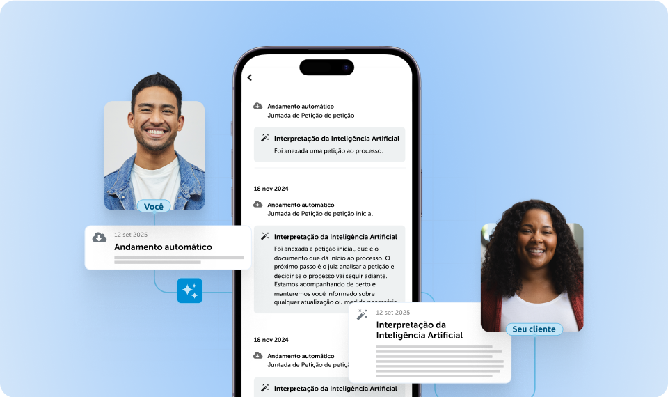 Melhore a comunicação do escritório sem esforço extra. Use as IAs para traduzir automaticamente o conteúdo técnico dos andamentos para uma linguagem acessível e para enviar ao seu cliente.