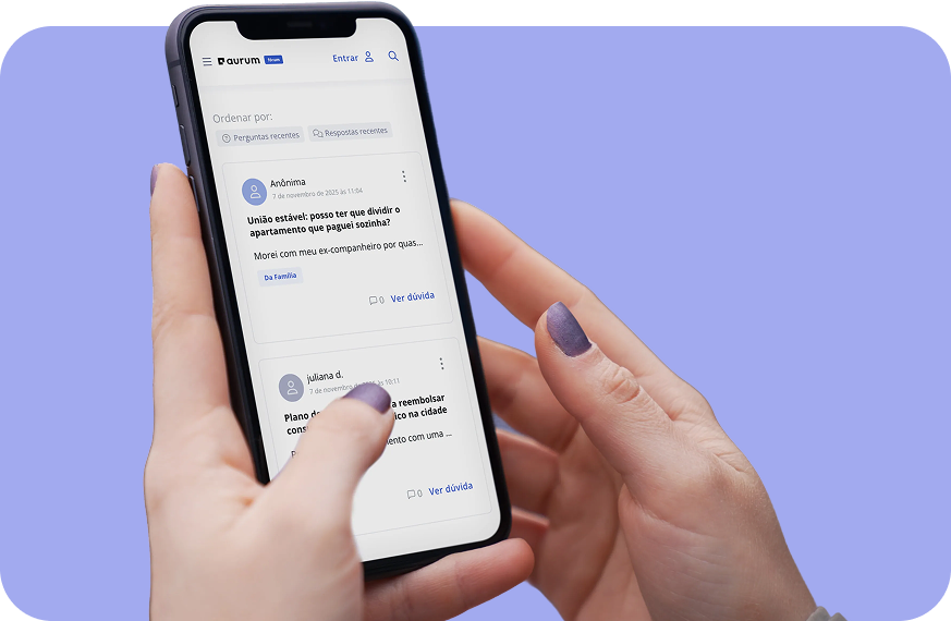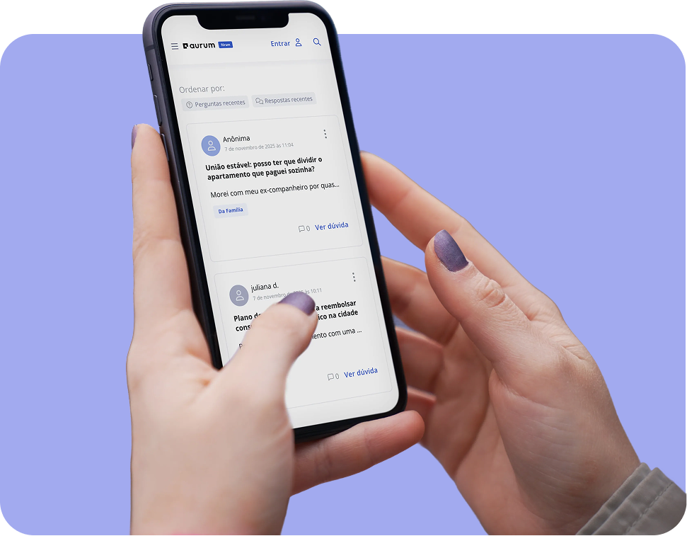 No Fórum da Aurum, você pode levar sua pergunta e contar com a ajuda de advogados e advogadas que compartilham conhecimento de forma gratuita e acessível