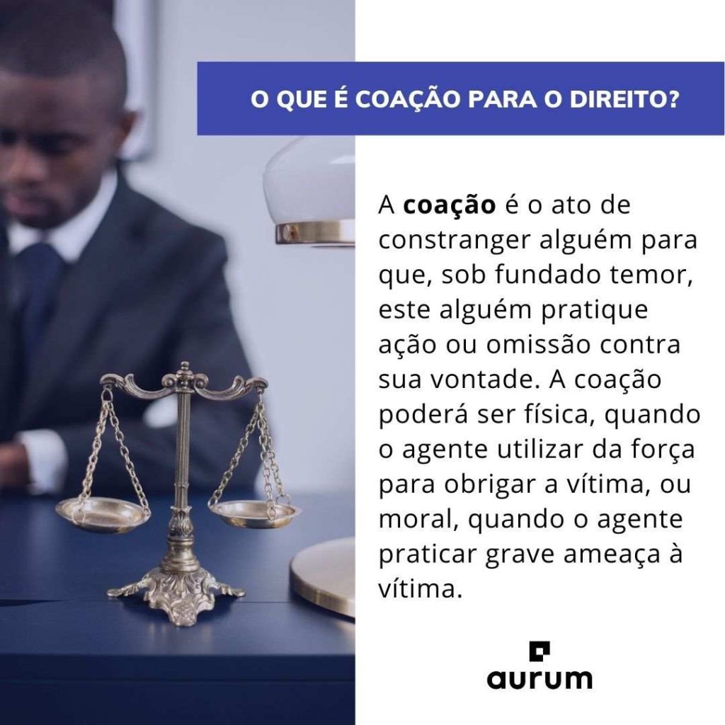 A coação é o ato de constranger alguém para que, sob fundado temor físico ou moral, tal pessoa pratique ação ou omissão contra a sua própria vontade.